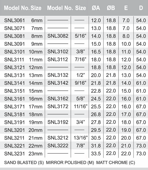 1. Chrome-molybdenum steel and special heat treatment. 2. Meets DIN, BS and ANSI. Lifetime guarantee. 3. Unique non-slip design will not cause rounding off corners and can drive a nut even 70% rounded off. 4. For Metric system, it will also drive 1 mm smaller regular metric fasteners. For example, the 19 mm socket can be used on 18 mm fastener. 5. For SAE system, it will also drive the comparable size of regular Metric fasteners. For example, the 11/16” socket can be used on a 17 mm fastener. 6. Worldwide patent.